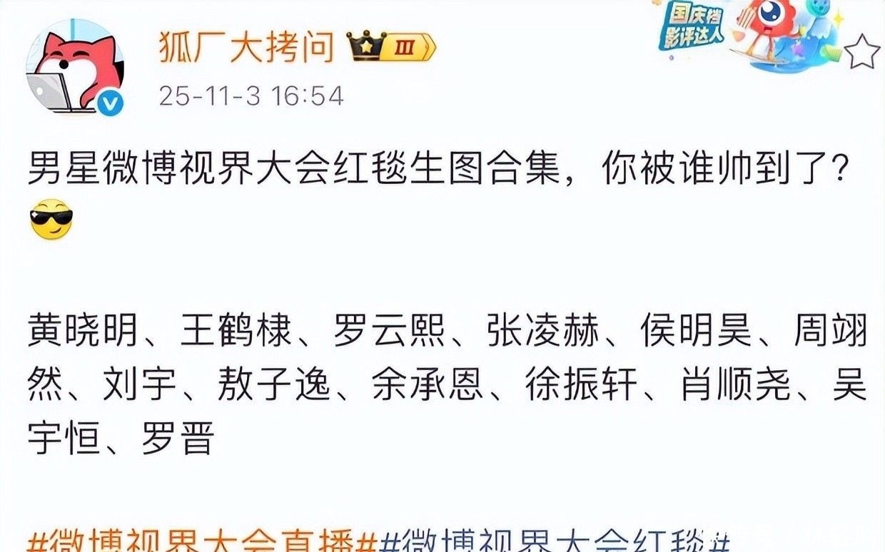 又是一年一度的微博视界大会如约而至,这场汇聚影视、时尚与流量的年度盛会再次在北京拉开帷幕。作为娱乐圈的风向标,红毯之上星光熠熠,群星云集,现场气氛热烈得仿佛能点燃整座城市。