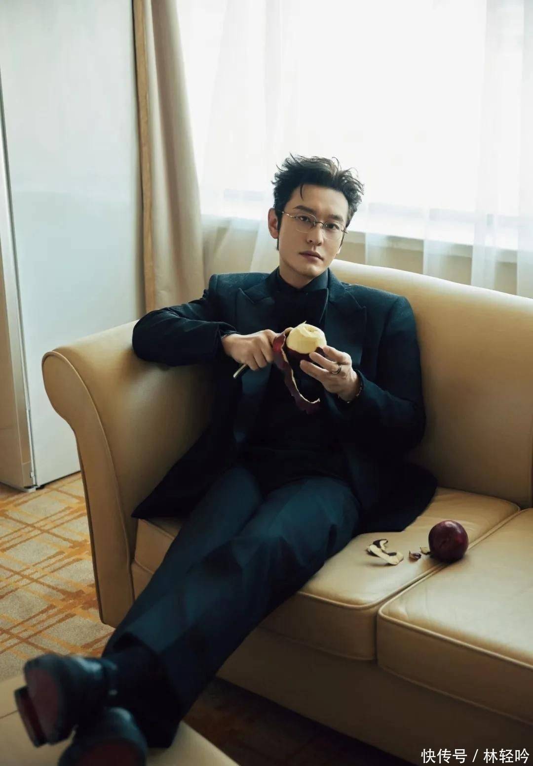 他身着剪裁利落的黑色西装,额头完全露出,佩戴一副无框眼镜,儒雅中透着干练,整个人散发着沉稳而高级的质感。